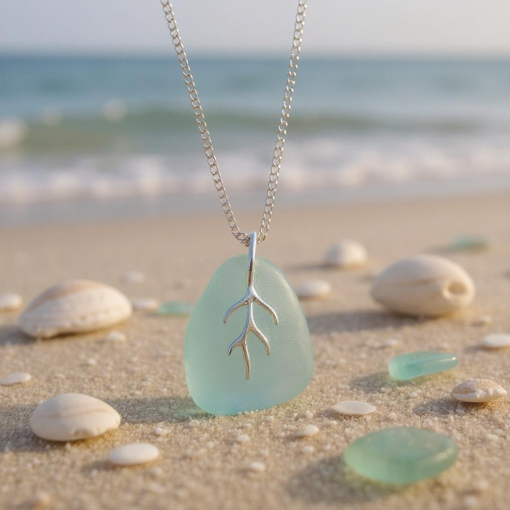 16" Dorset Sea Glass & Silver Seaweed Bail Pendant Necklace