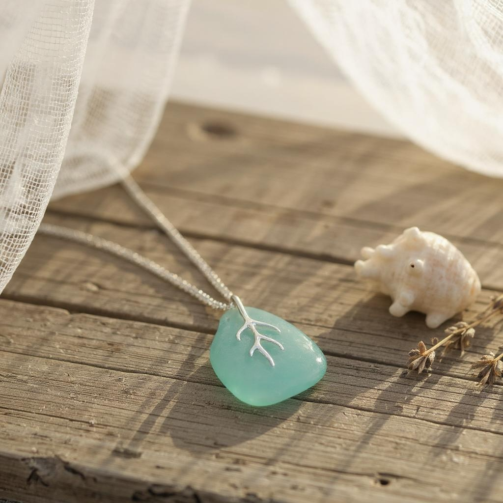 18" Dorset Sea Glass & Silver Seaweed Bail Pendant Necklace