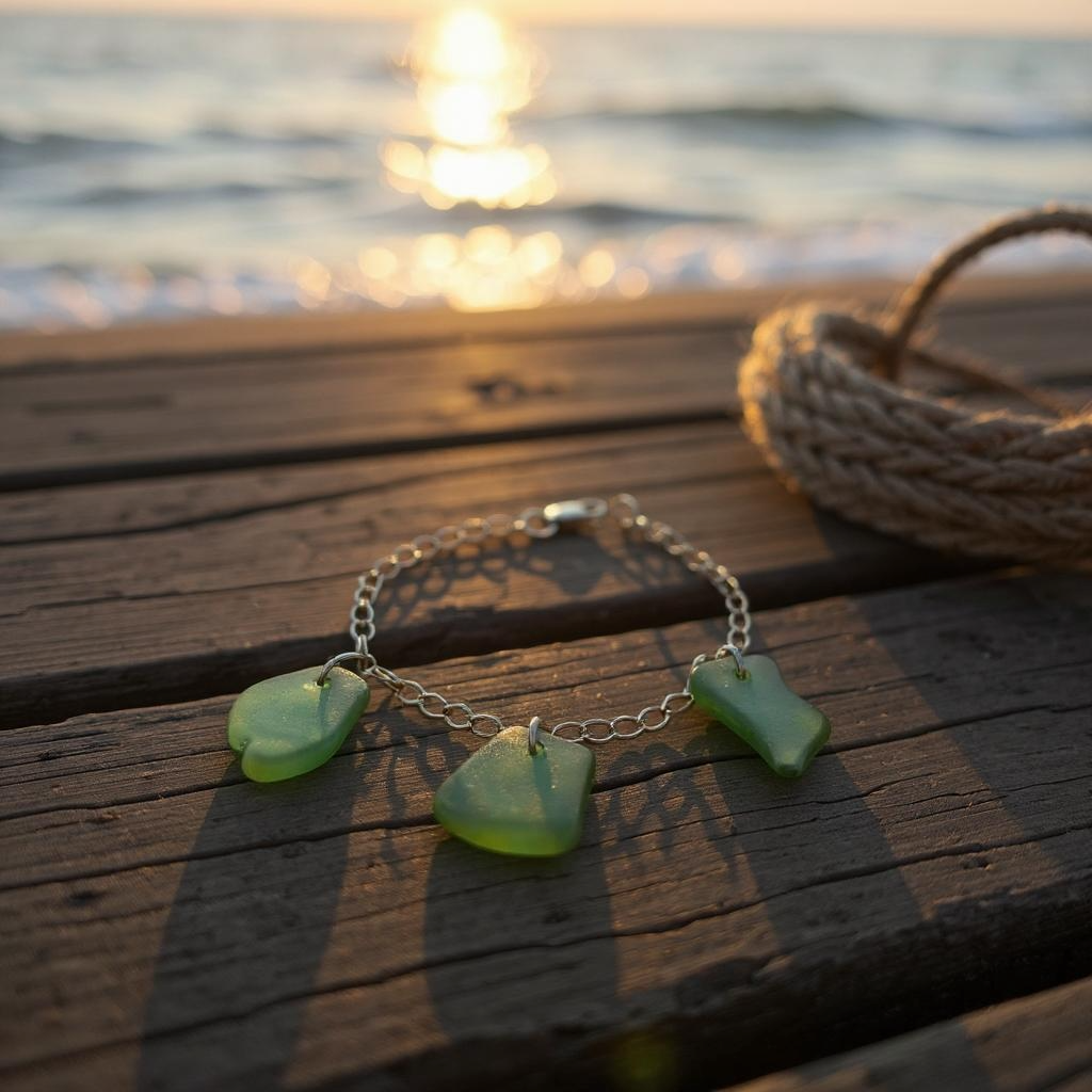 Sterling Silver & Dorset Teal Green Sea Glass Necklace